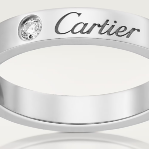 Its smooth, polished surface reflects Cartier’s legendary craftsmanship, while the solitary diamond serves as a timeless emblem of enduring love and commitment. Designed to be worn alone or paired with engagement rings, this wedding band offers versatility and grace for everyday wear or special occasions.