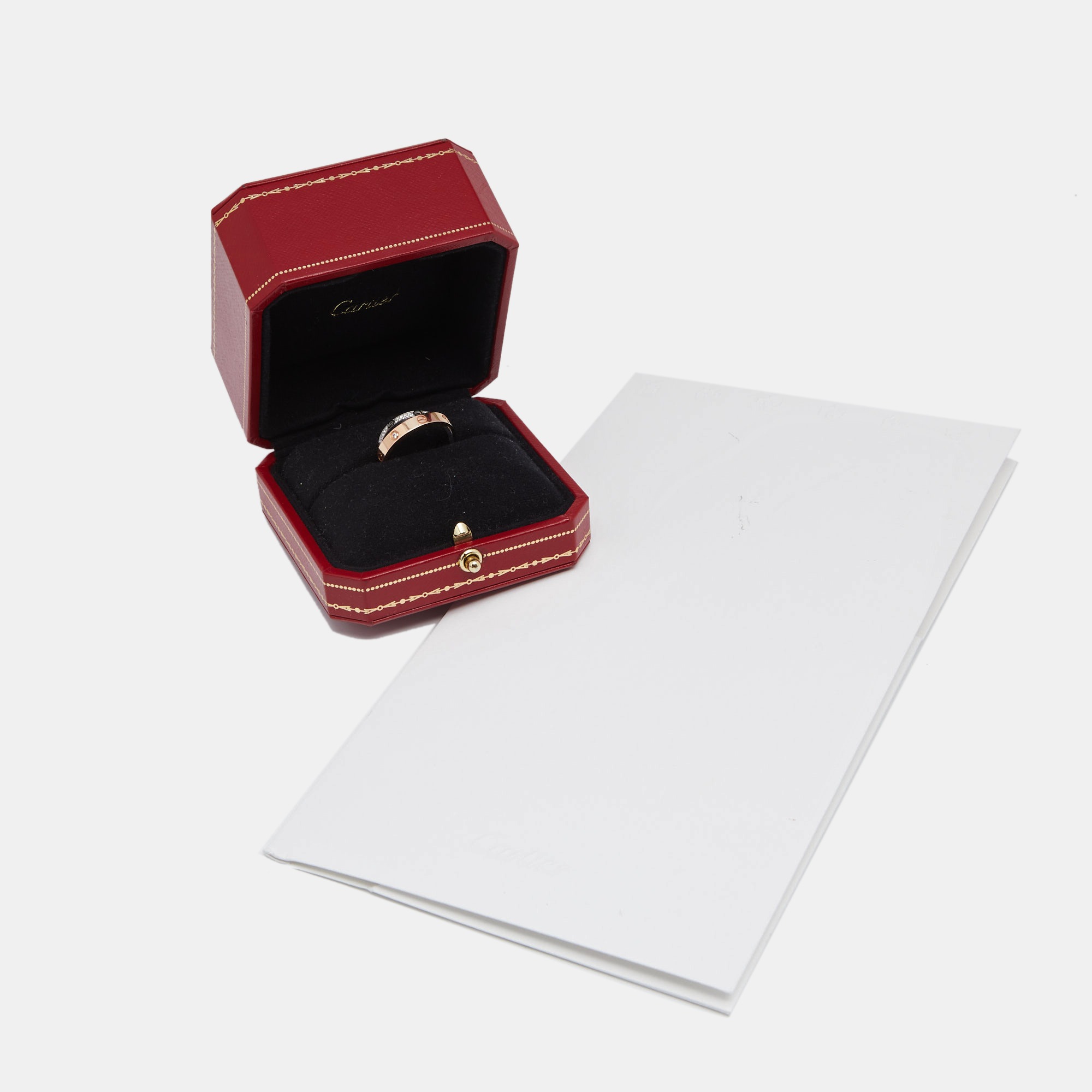 Versatile and sophisticated, this double-band ring can be worn alone as a captivating statement piece or paired with other rings for a layered, personalized look. A true expression of Cartier craftsmanship, it embodies timeless elegance, passion, and the promise of lasting bonds.
