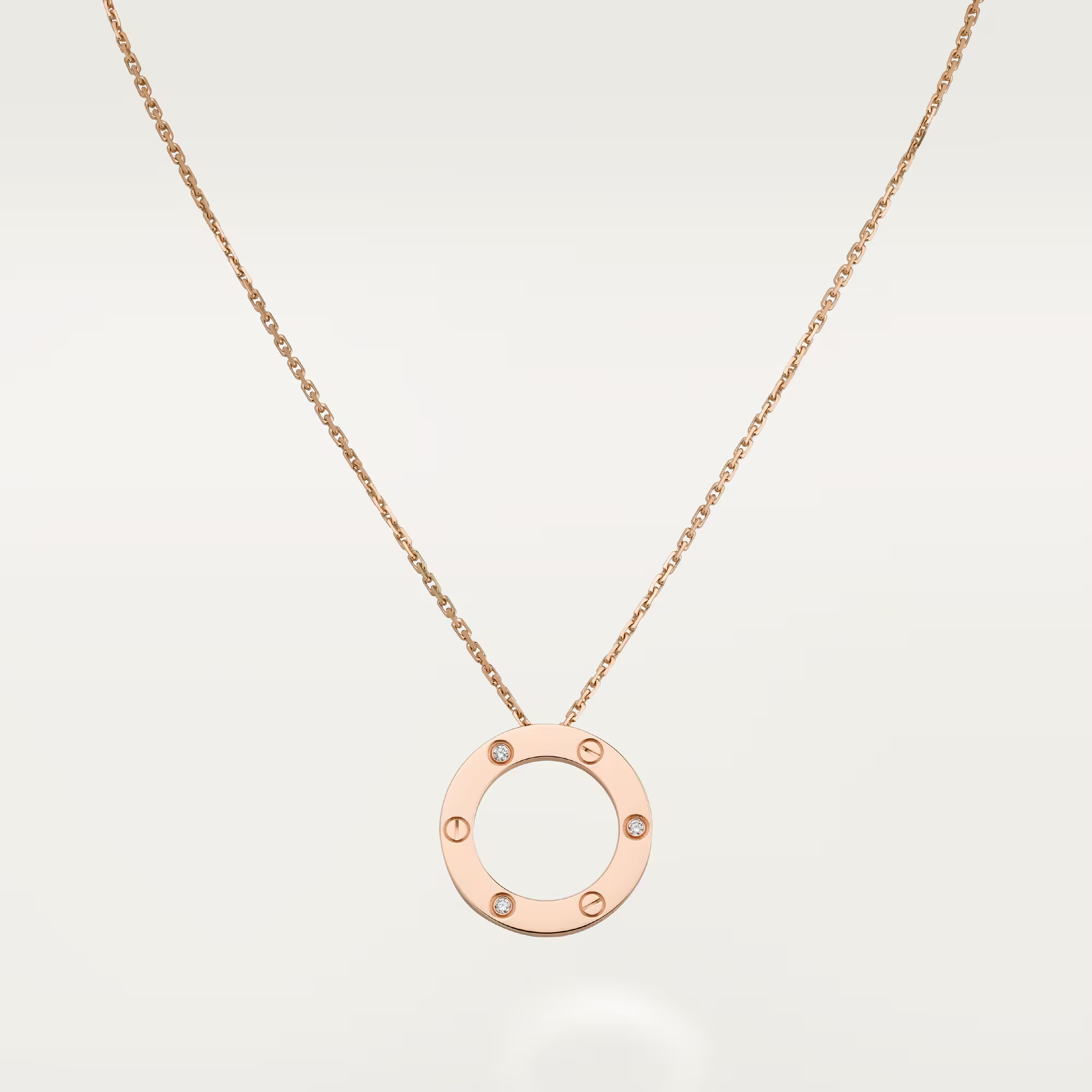 The legendary LOVE pendant is elevated with three brilliant-cut diamonds, each adding a touch of luminous sparkle to Cartier’s most recognizable silhouette. Crafted in glowing 18K gold, the screw-motif circle becomes a refined symbol of connection—strong, modern, and beautifully timeless.