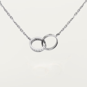 Refined, modern, and beautifully expressive—the half-paved LOVE pendant brings a fresh sparkle to Cartier’s most iconic symbol. The signature screw motifs remain crisp and architectural, while one side is illuminated with a line of brilliant-cut diamonds, creating a striking contrast between smooth gold and radiant light.