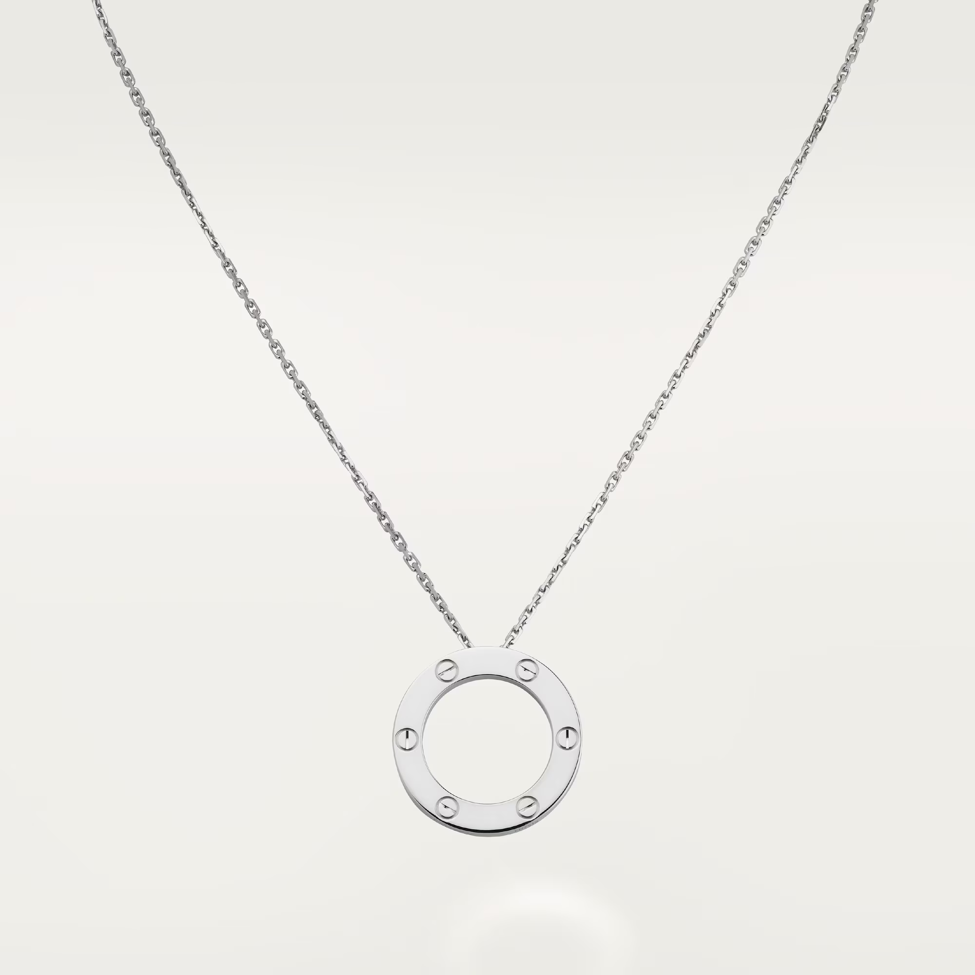 Timeless, iconic, and instantly recognizable—the Cartier LOVE pendant captures the purity of modern devotion. Its sleek circular form, engraved with the emblematic screw motifs, reflects a design born from passion and sealed with intention.