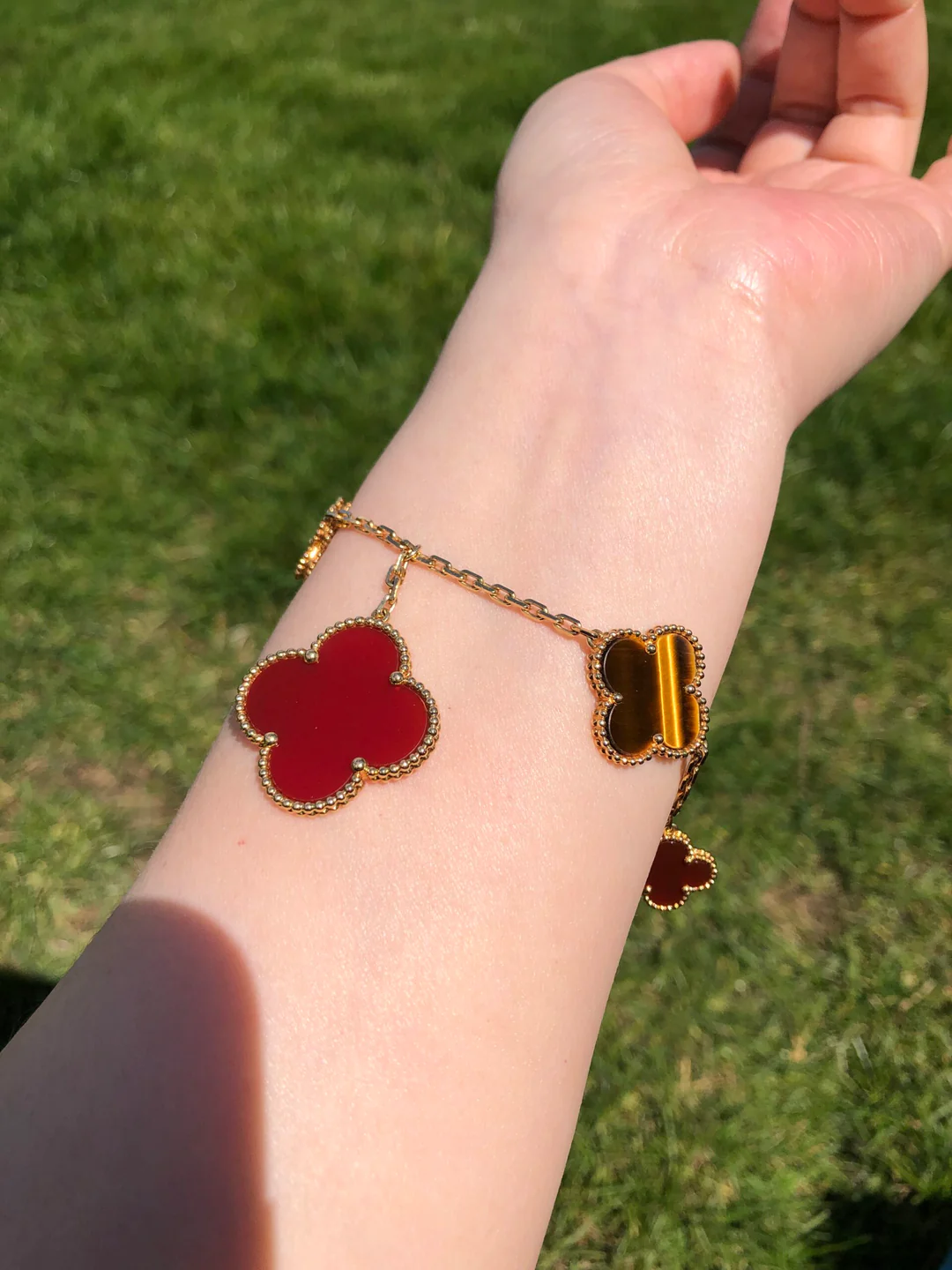Each motif is crafted in a distinct size, creating a graceful balance between delicacy and presence. This variation brings visual rhythm to the bracelet, allowing every motif to shine in its own unique way.