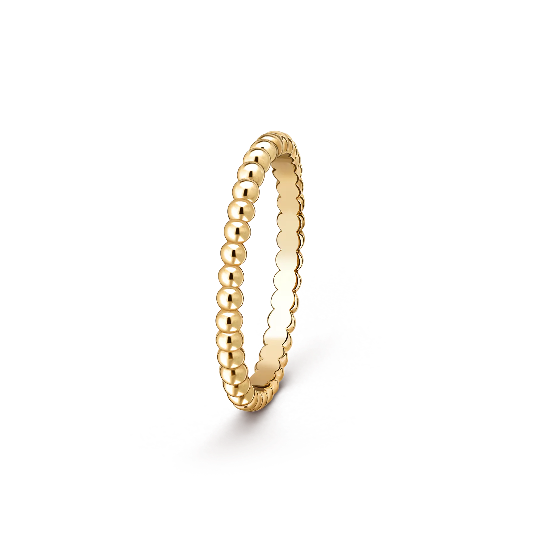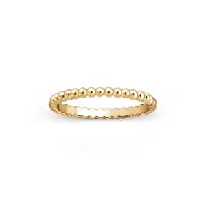 The delicate proportions of the small model make this ring perfect for daily wear, while the radiant golden pearls—formed by meticulously hand-engraved gold beads—create a rich, textured effect that catches the light with every movement. Whether worn alone for a subtle yet refined statement or stacked with other Perlée designs for a layered, luminous look, it brings sophistication and charm to any ensemble.