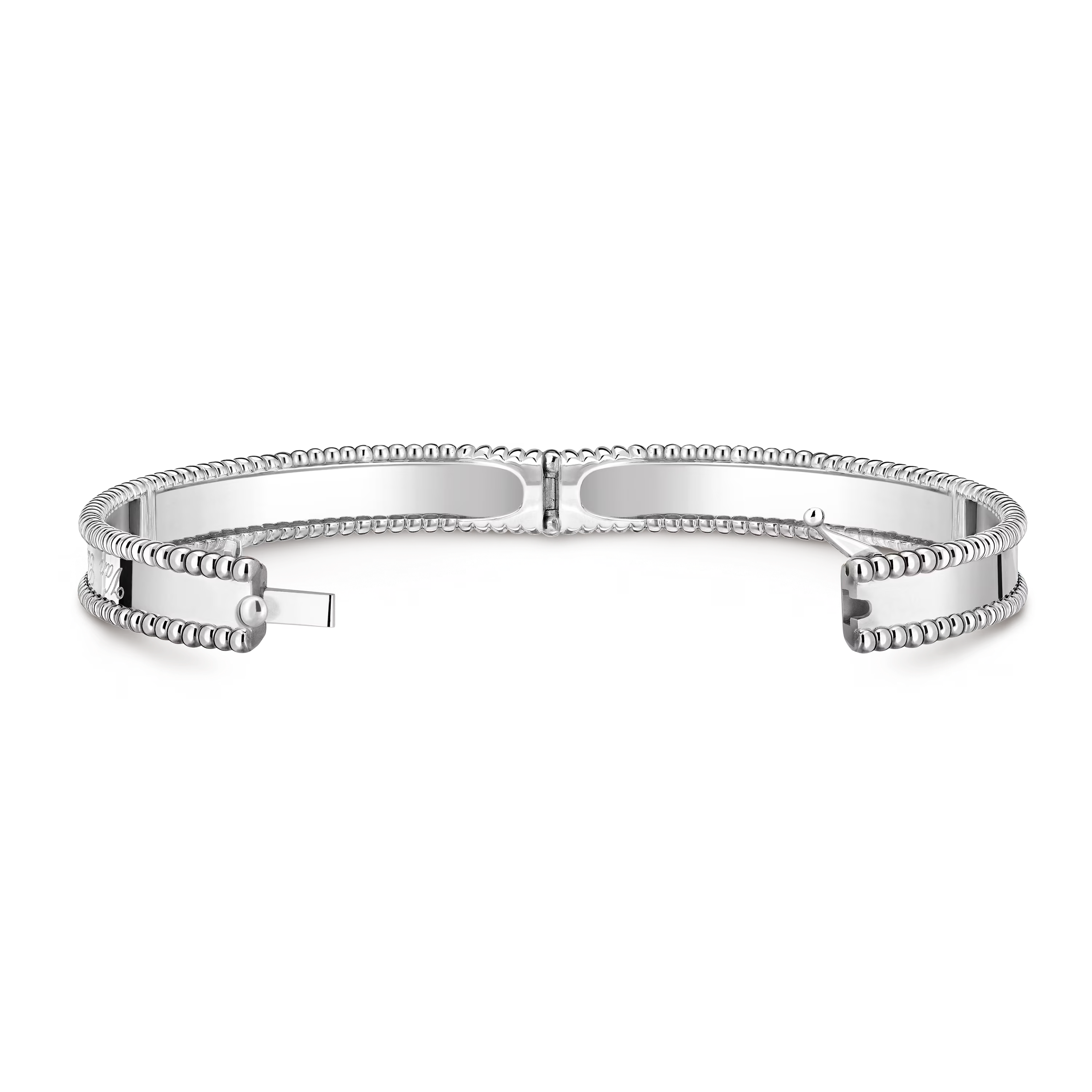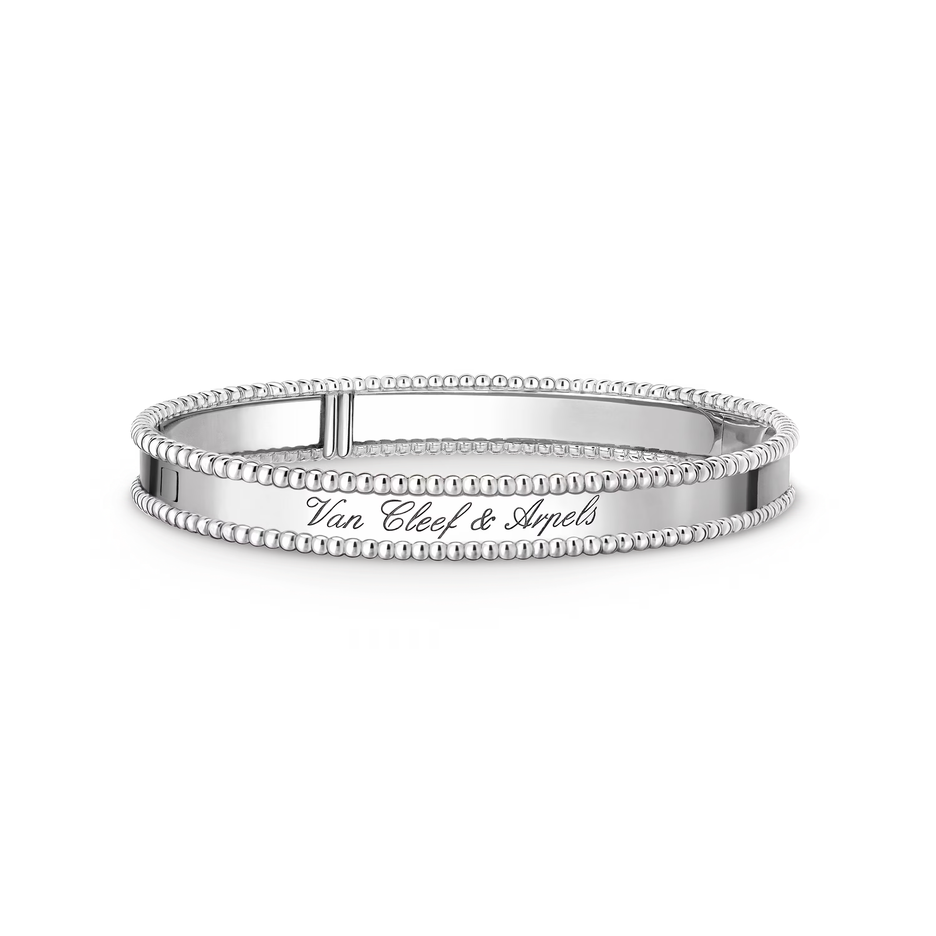 Designed for everyday elegance, the bracelet slides comfortably onto the wrist and adapts fluidly to movement. It may be worn alone as a minimalist statement or stacked with other Perlée creations for a modern, layered look.