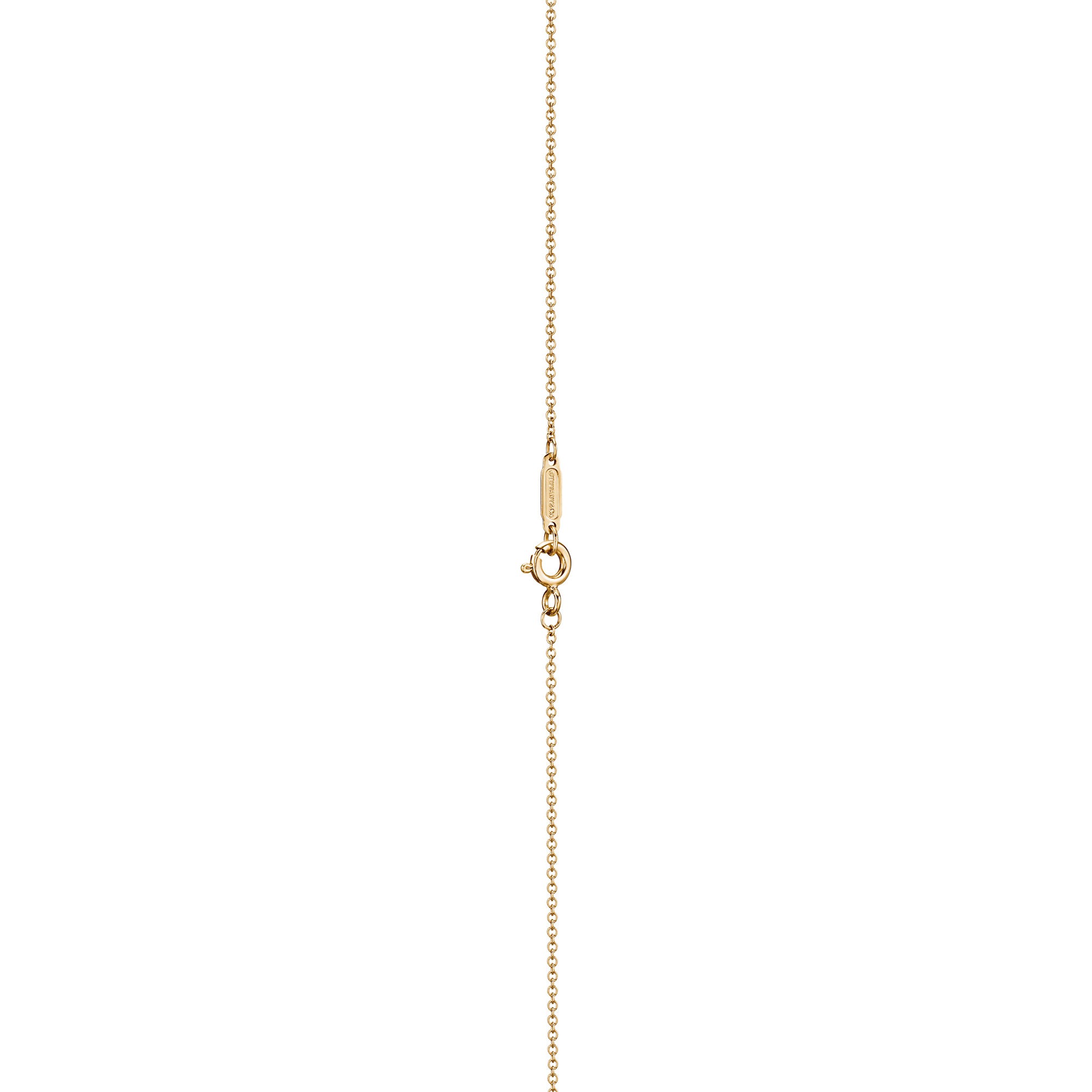 The entire bar is accented with brilliant white diamonds, expertly pavé-set to create a soft yet captivating shimmer. Their fine sparkle enhances the pendant’s graceful curve, making it a beautiful everyday luxury piece that catches the light with every movement.