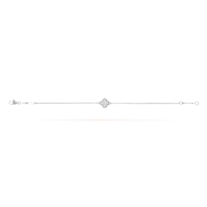 This bracelet features a single Sweet Alhambra motif centered along a fine chain. The restrained composition highlights the purity of the design, allowing the iconic clover to take center stage with understated charm.