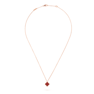 Delicate, joyful, and full of symbolic charm, the Sweet Alhambra Pendant Mini embodies the essence of Van Cleef & Arpels’ timeless clover design. Crafted in warm 18K rose gold, this pendant features a vibrant carnelian stone at its center, capturing the Maison’s poetic celebration of luck, beauty, and craftsmanship.