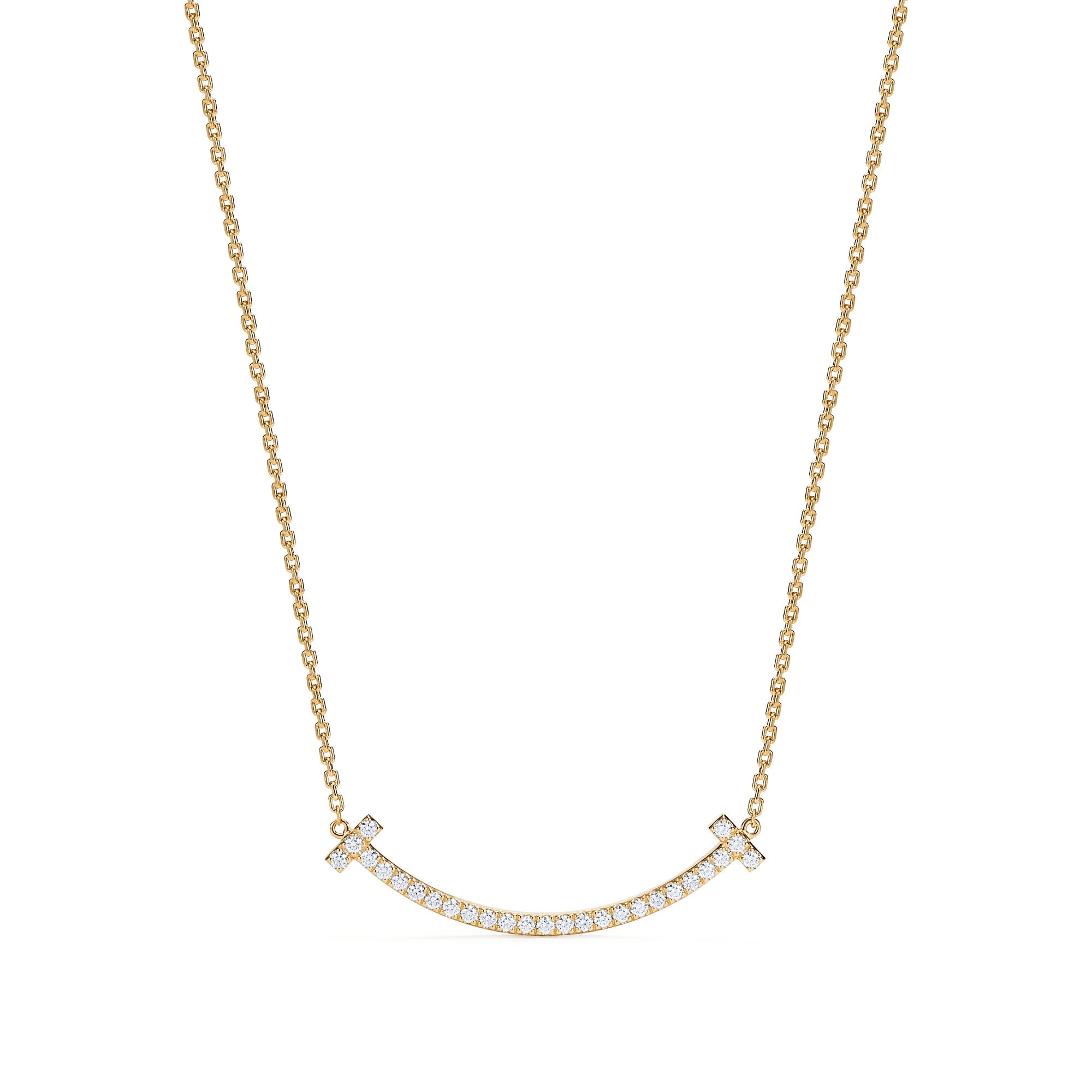 Bright, modern, and effortlessly elegant, the Tiffany T Medium Smile Pendant with Diamonds captures the confident, uplifting spirit of the Tiffany T collection. Its signature curved bar creates a refined “smile” silhouette — a symbol of optimism, clarity, and contemporary style.