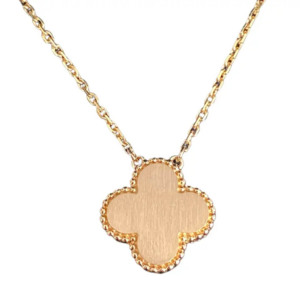 The Vintage Alhambra Pink Gold Necklace by Van Cleef & Arpels features the Maison’s iconic four-leaf clover motif, symbolizing luck, elegance, and timeless beauty. Crafted in warm 18K pink gold, each motif is outlined with the signature beaded border, reflecting meticulous craftsmanship and refined design.