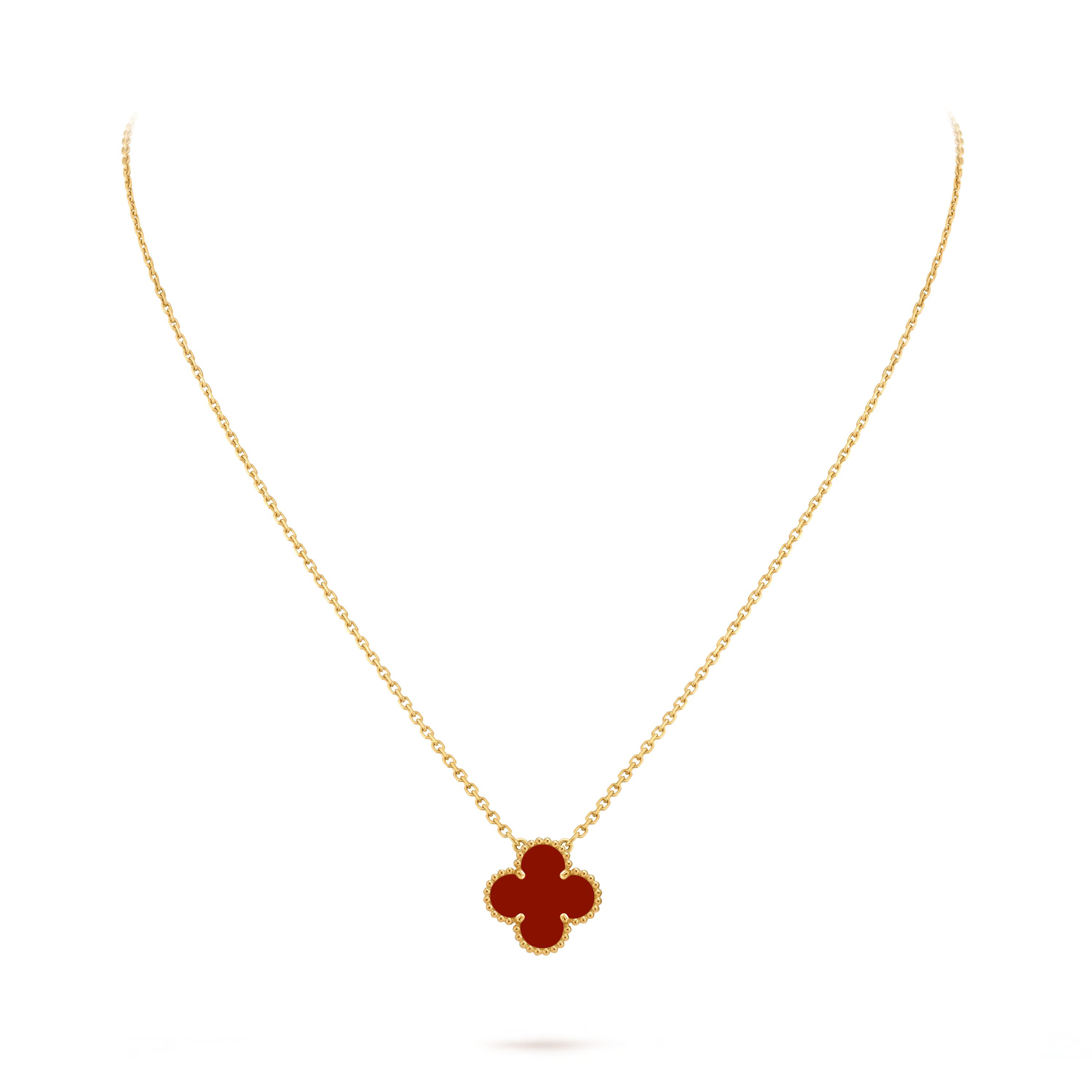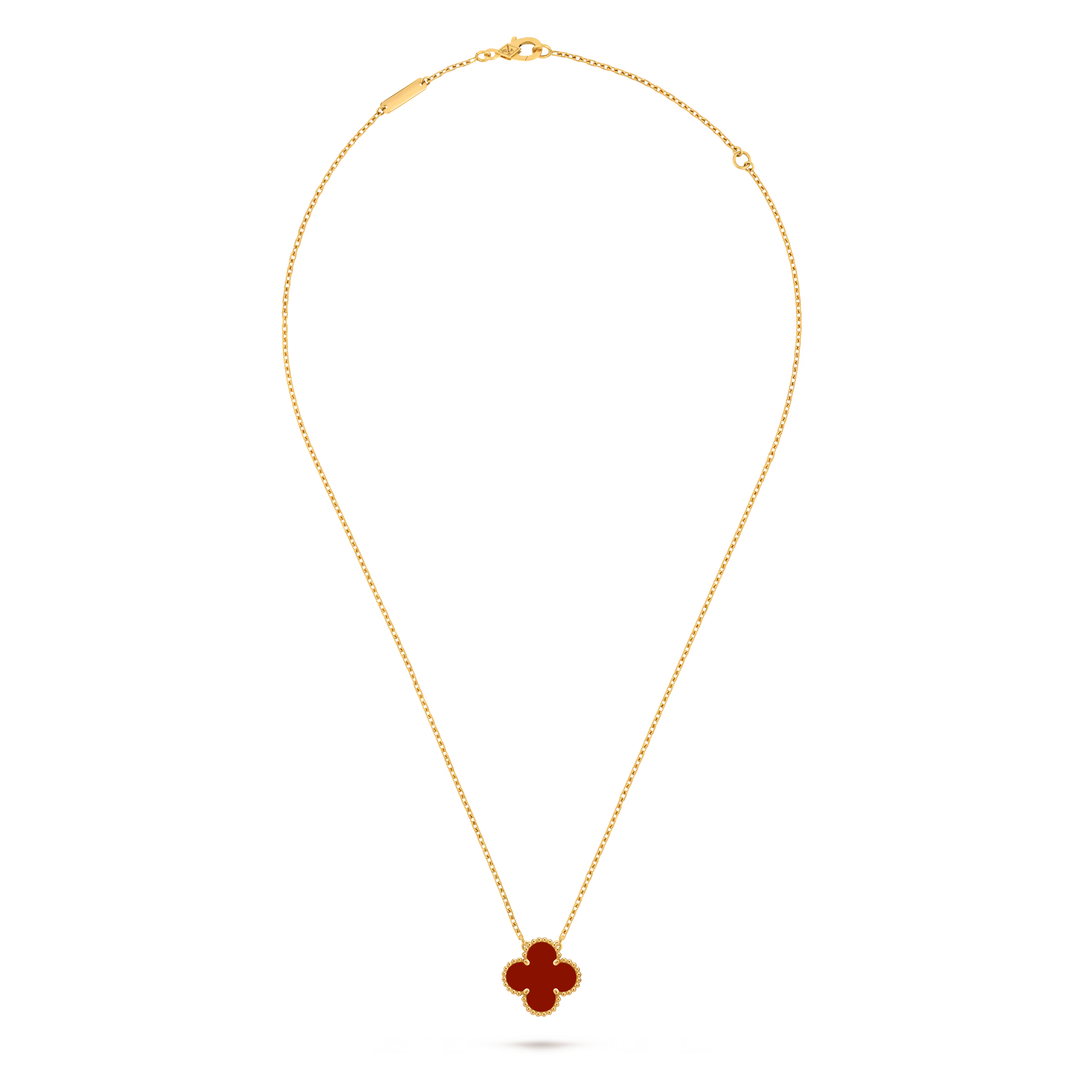Perfectly proportioned and instantly recognizable, the pendant features the classic Alhambra shape—soft curves, balanced symmetry, and an aura of understated sophistication. Each motif is carefully selected and crafted to highlight the natural beauty of its material.