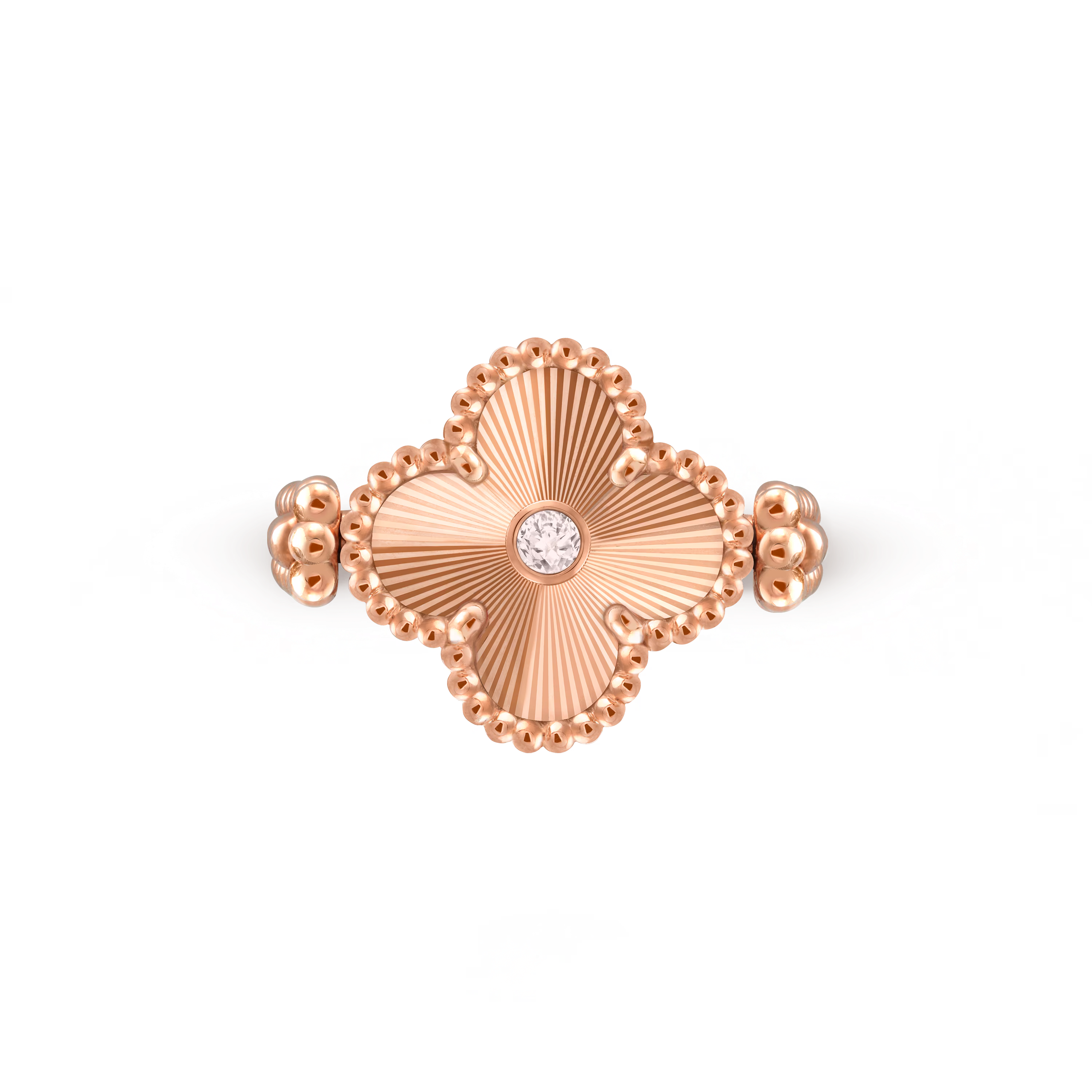 A captivating expression of versatility and grace, the Vintage Alhambra Reversible Ring reimagines the Maison’s iconic emblem of luck through an innovative, two-sided design. Crafted in glowing 18K rose gold, this ring lets you choose between two distinct moods—each infused with the timeless poetry of the Alhambra Collection.
