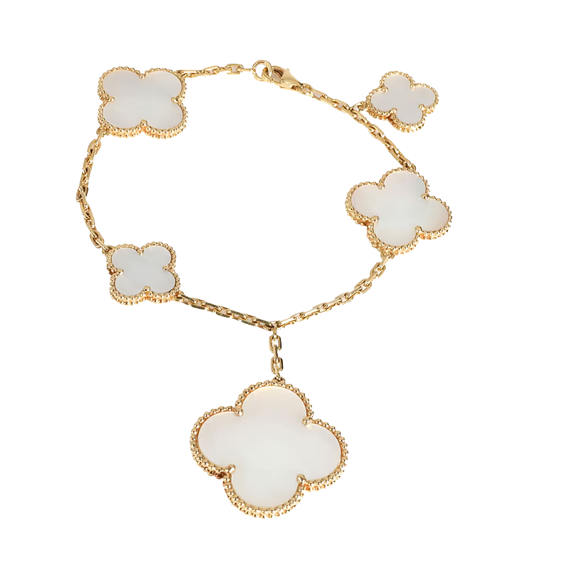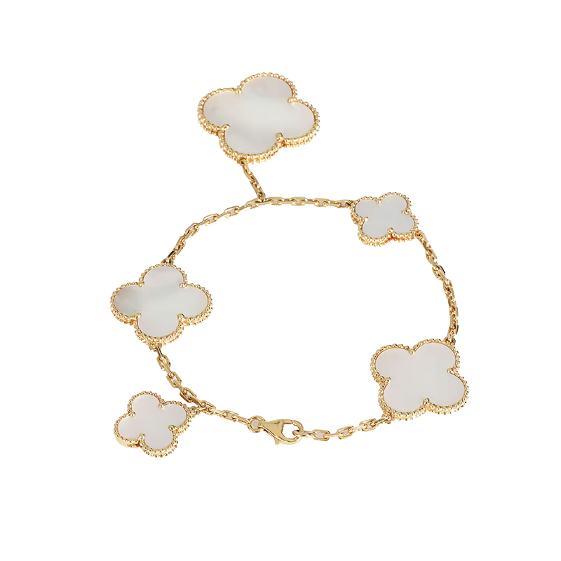 Elegant and meaningful, the Magic Alhambra Mother of Pearl bracelet embodies luck, femininity, and enduring elegance—offering a timeless piece that transcends seasons and trends.