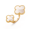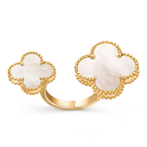 Crafted in 18K yellow gold, the ring features the signature Alhambra motif with its signature hand-polished contours and radiant finish. Set with luminous mother-of-pearl or other precious stones, this ring offers a captivating combination of elegance and creativity. The sculptural design creates a striking visual effect, making it a true statement piece for the bold, sophisticated wearer.