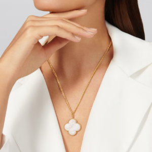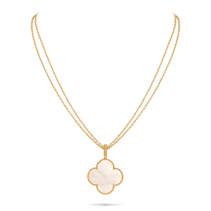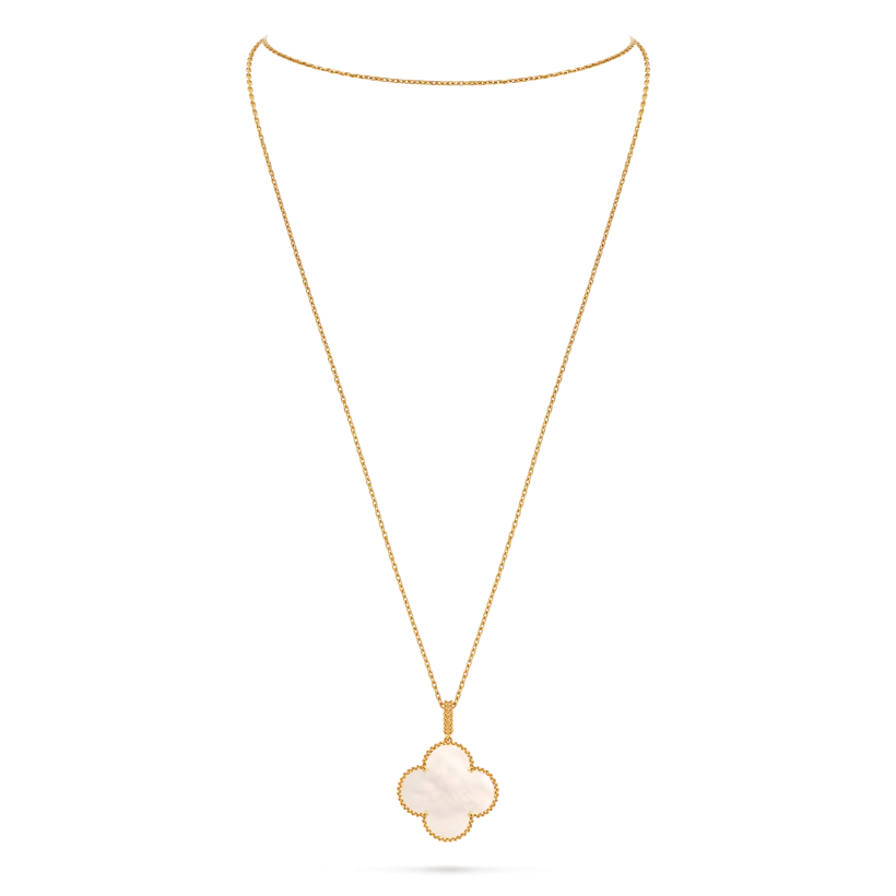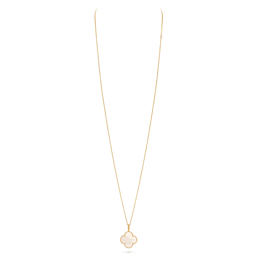The Magic Alhambra long necklace with 1 motif is a sophisticated expression of symbolic design and timeless artistry. Its singular, oversized motif brings effortless elegance to any jewelry collection.