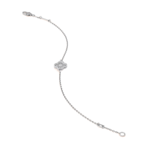 This bracelet features a single Sweet Alhambra motif centered along a fine chain. The restrained composition highlights the purity of the design, allowing the iconic clover to take center stage with understated charm.
