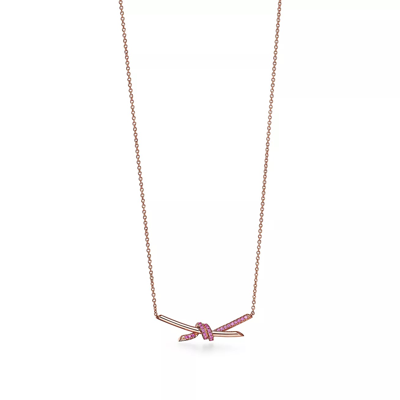 Tiffany Knot Pendant in Rose Gold with Pink Sapphires