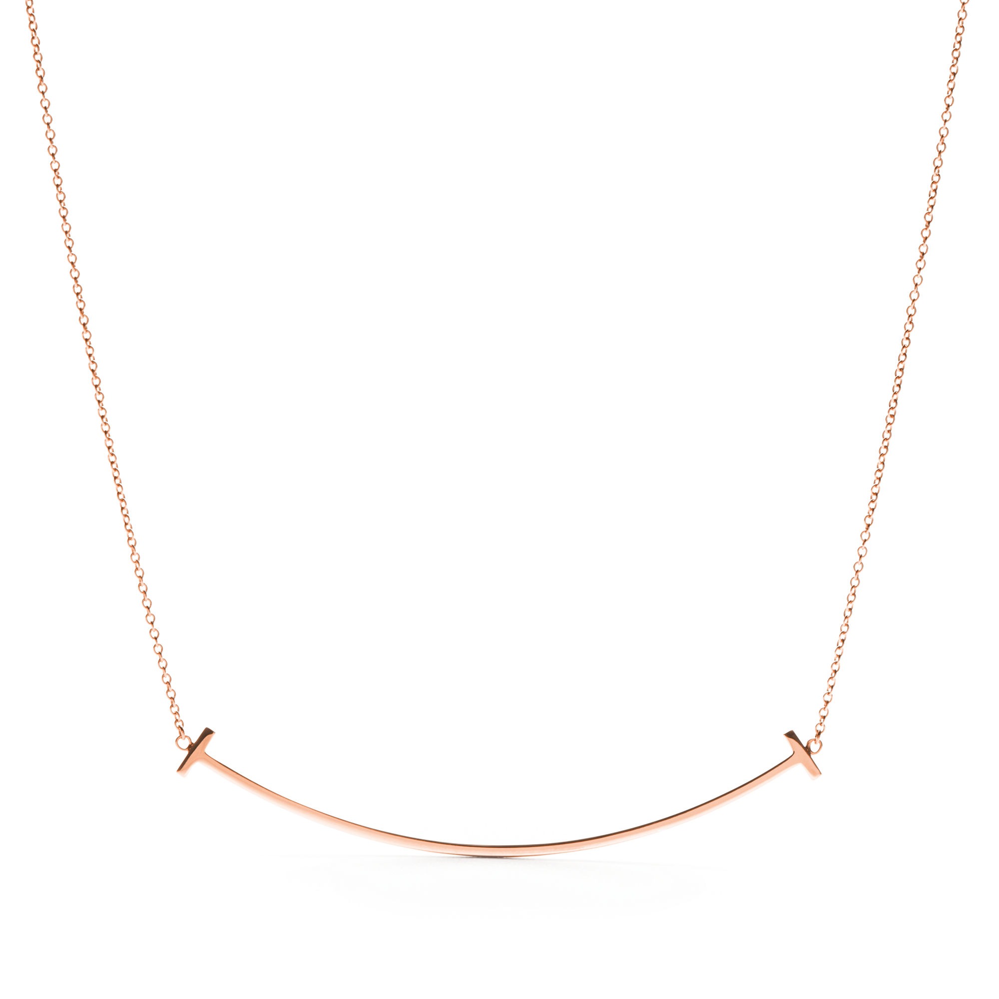 Modern, sleek, and full of effortless confidence—the Tiffany T Smile Pendant in Large makes a bold yet refined statement. Designed with the signature curved bar silhouette from the iconic Tiffany T collection, this larger-size pendant offers a graceful sweep across the neckline, creating a look that is both sculptural and elegantly minimal.