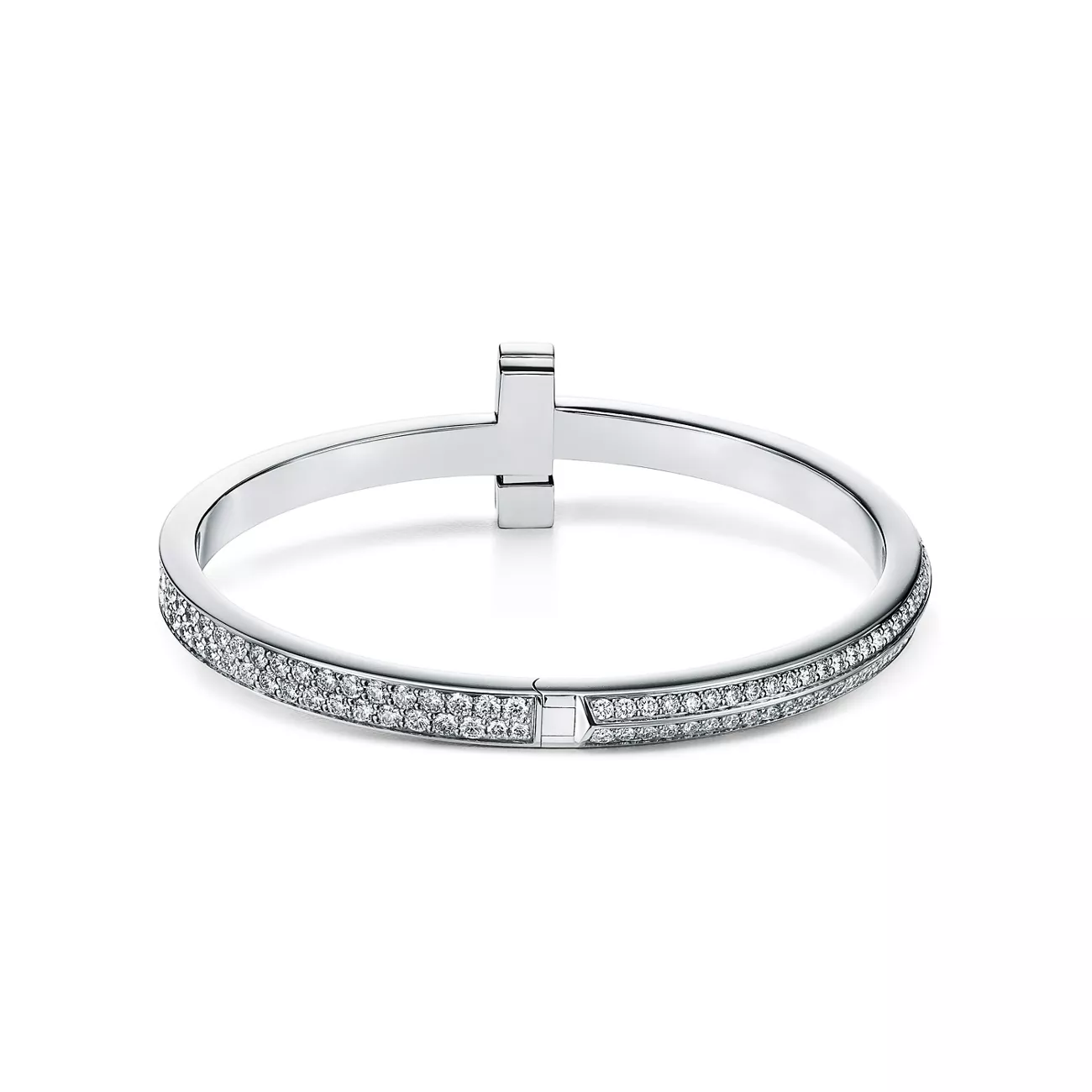 The wide profile creates a strong visual statement, while the continuous diamond setting adds brilliance from every angle. The hinge and clasp are seamlessly integrated, reflecting Tiffany’s meticulous engineering and refined craftsmanship.