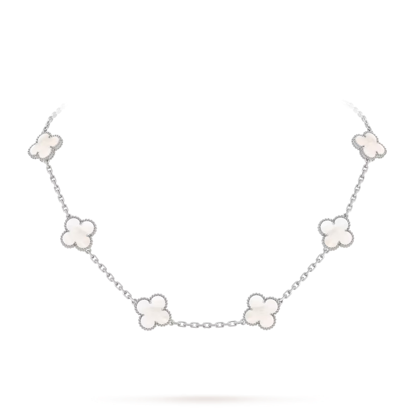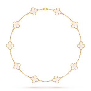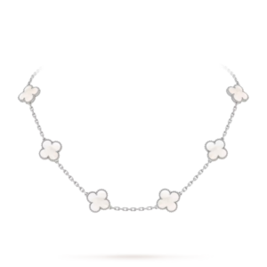 The Vintage Alhambra necklace with 10 motifs is a timeless expression of elegance and artistry. Its symbolic design and refined craftsmanship make it a meaningful and sophisticated addition to any jewelry collection.