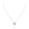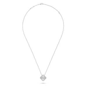 Suspended from a matching white gold chain, the pendant sits elegantly along the neckline, offering a touch of quiet luxury. Whether worn alone or paired with other Alhambra creations, it remains a graceful symbol of harmony and timeless beauty.
