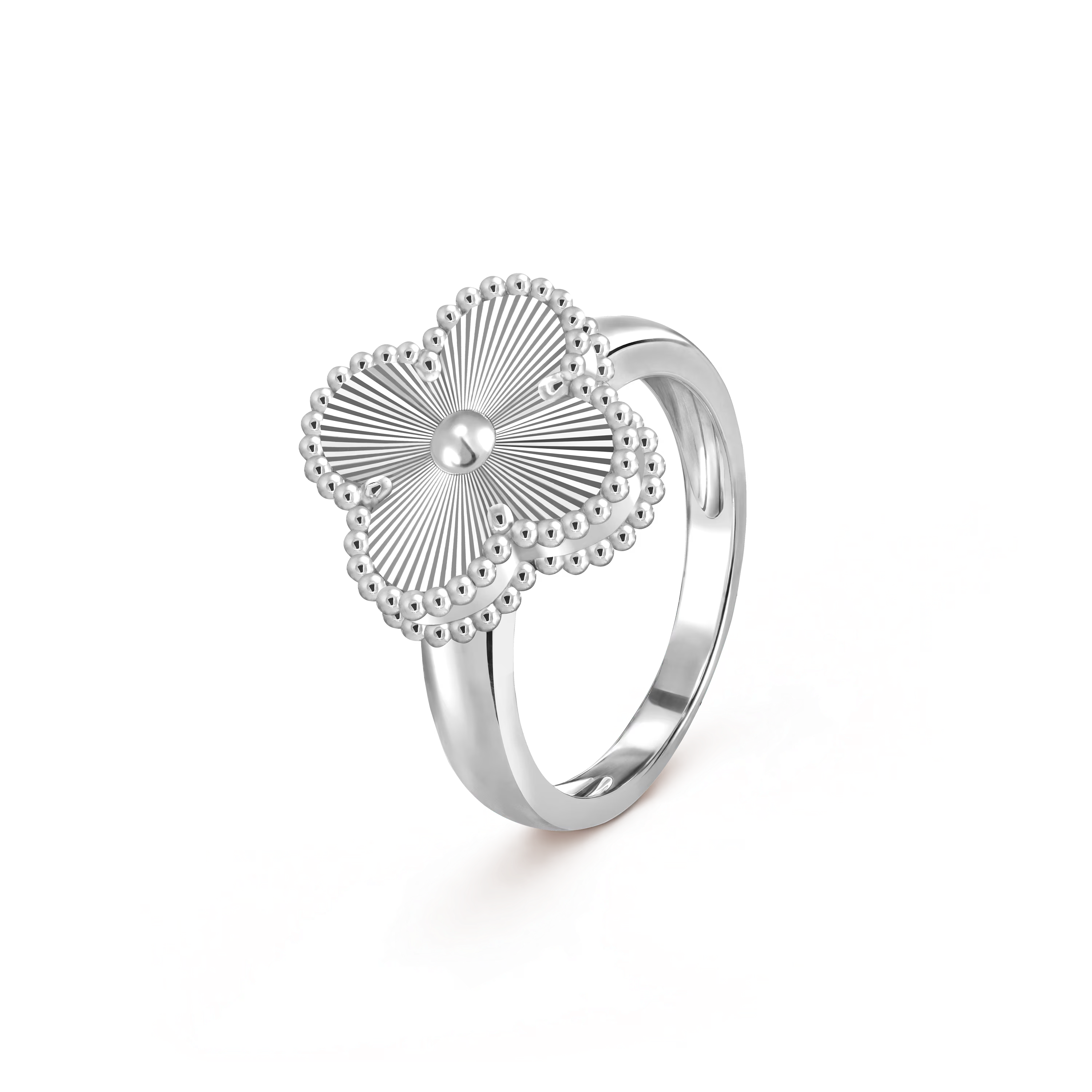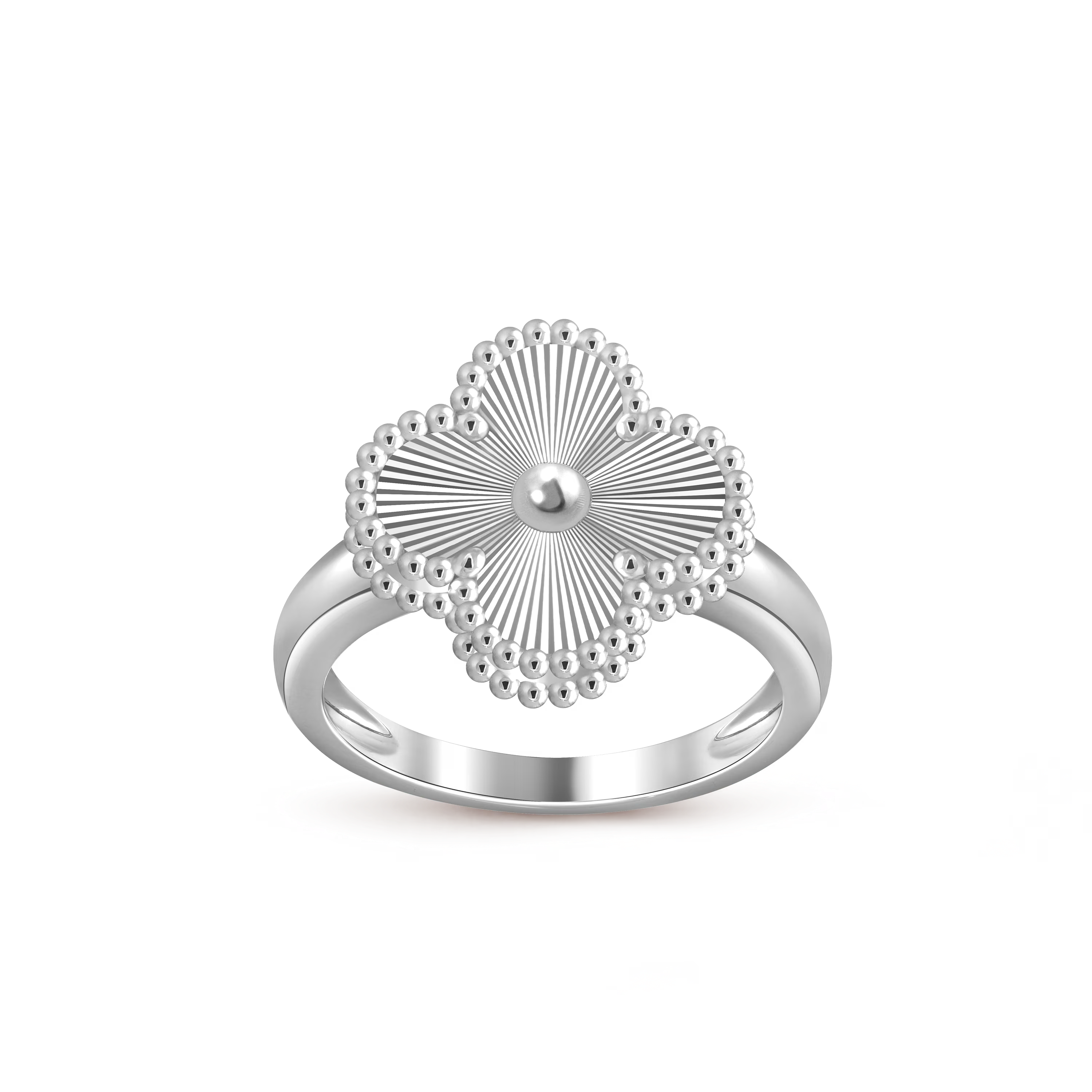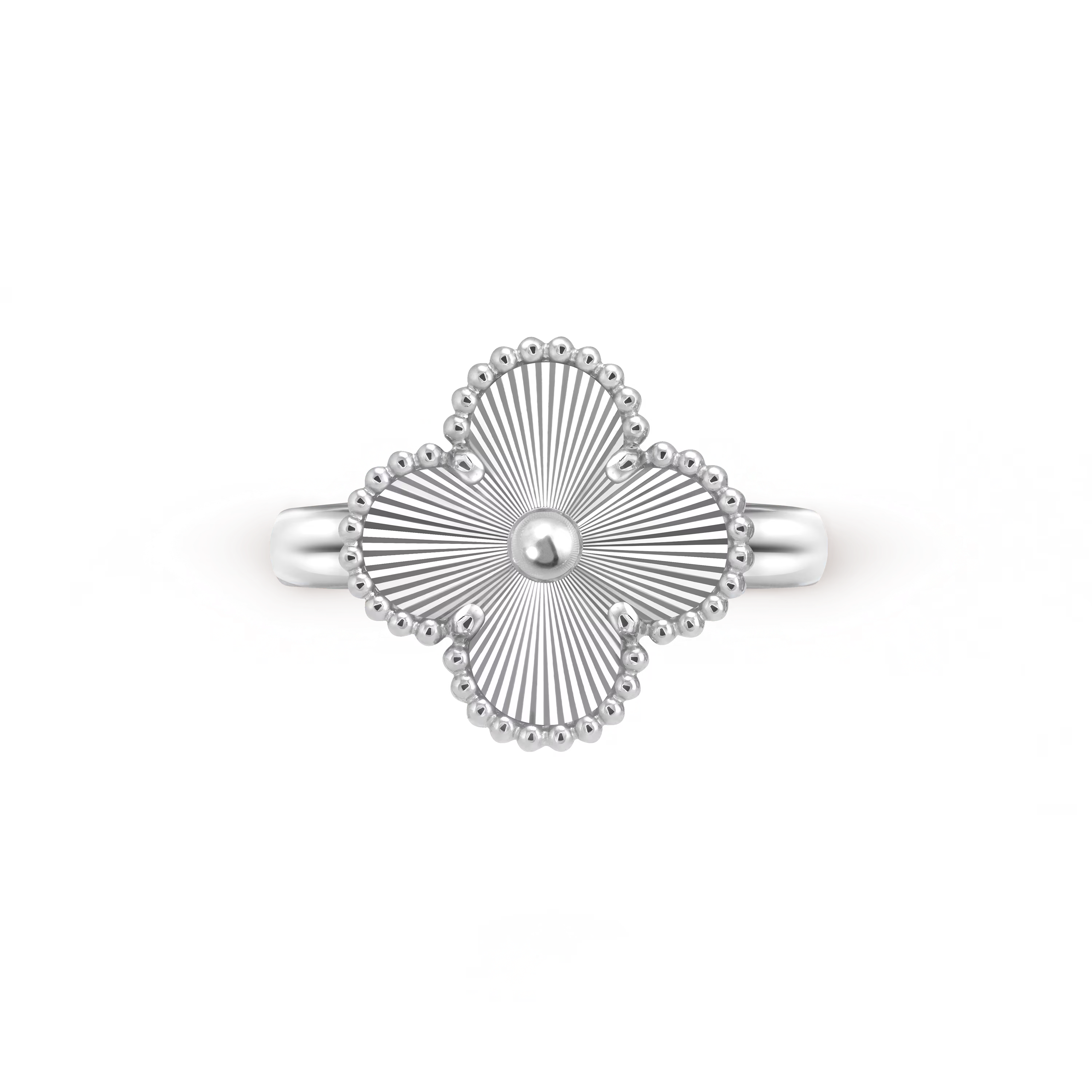 Made in 18K white gold, the ring features the classic Alhambra motif with a hand-polished finish, reflecting the Maison’s meticulous attention to detail. Its refined contours and understated elegance make it perfect for both everyday wear and special occasions.